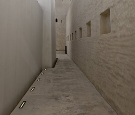 I took a photo of this craftswoman in one touristic facility. She is wearing a sort of abaya traditionally being used for protection from the sun and desert dust but then repurposed for reasons of modesty and religious rules. Orange/red undergarment with woven patterns is a “thobe” displaying her own region and status. The golden edging is needed for the outfit to be more durable considering harsh climate conditions. The most interesting item is that golden mask on her face which is called the Gulf burqa (or batoola). Apart from purposes of covering a face out of modesty, or to show her status and identity, this thing is reflecting some sunlight and is contrasted beautifully with black fabric.